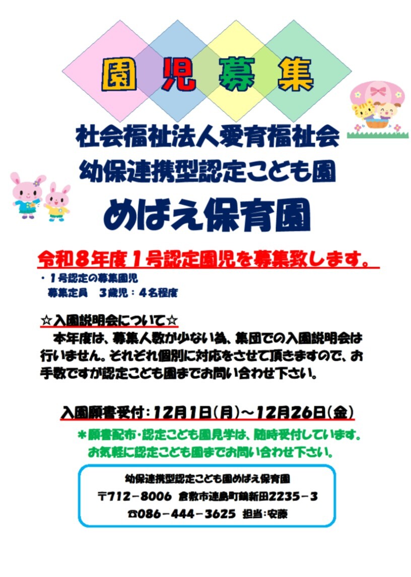 令和8年度1号認定園児を募集中です。